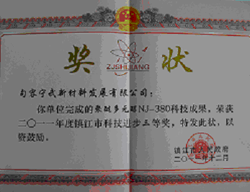 NJ-380項目獲鎮(zhèn)江市科技進步三等獎